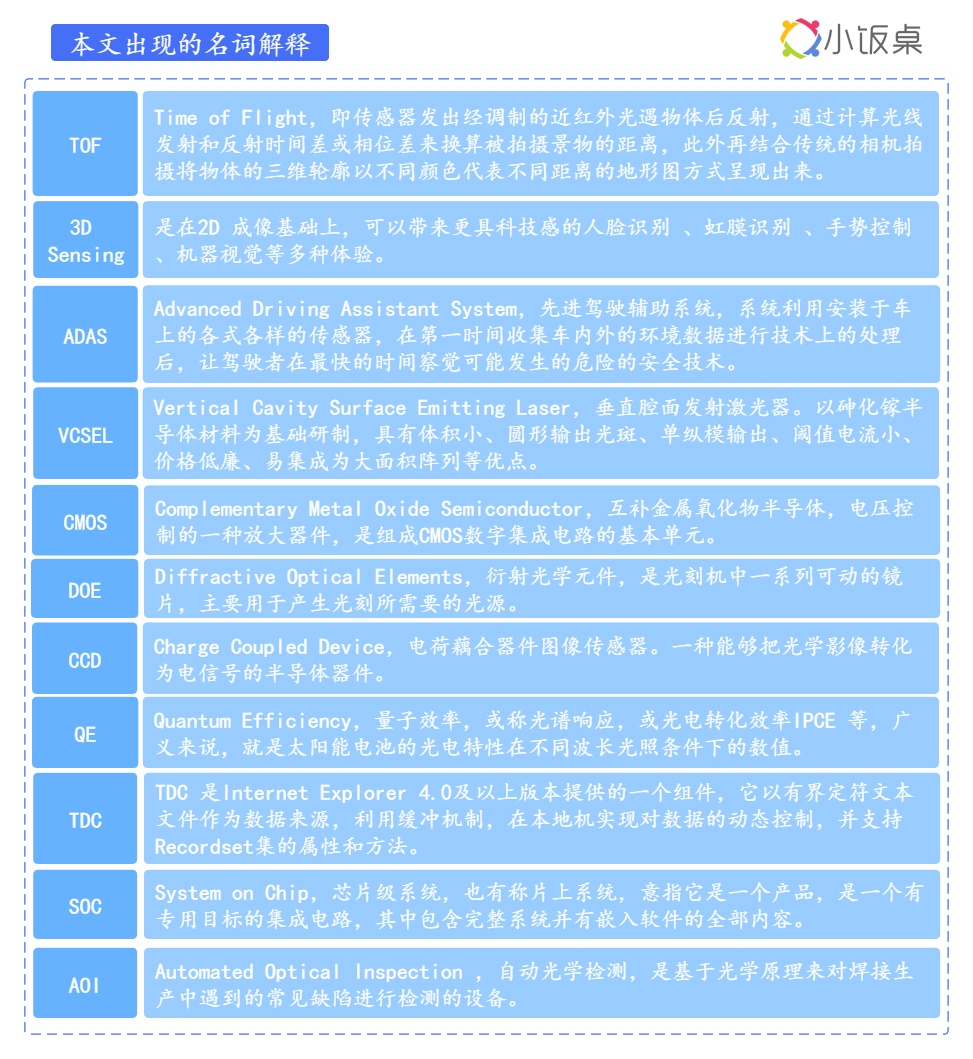 TOF方面,其不需要受到点阵投影仪的限制,核心器件为VCSEL的性能和功率,尤其是在温漂问题方面,国内一部分厂商已拿出行之有效的解决方案,并部署至产品中。
