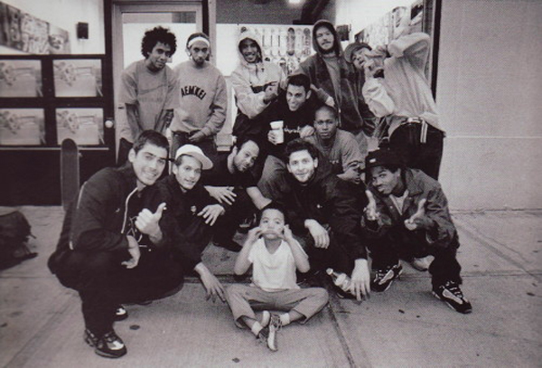 在90年代纽约,滑板文化与Hip-hop音乐成为亚文化的核心,扎根在纽约Lafayetta街上的Supreme,是去往滑板圣地Washington Square公园的必经之处,很快Supreme就成为了纽约青年的集聚地,他们一同玩滑板、喝麦芽酒,听着Hip-hop疯狂的Party,干着一切最90年代的事,Supreme这样“完美”的根据地自然成为了链接纽约亚文化的关键纽带。