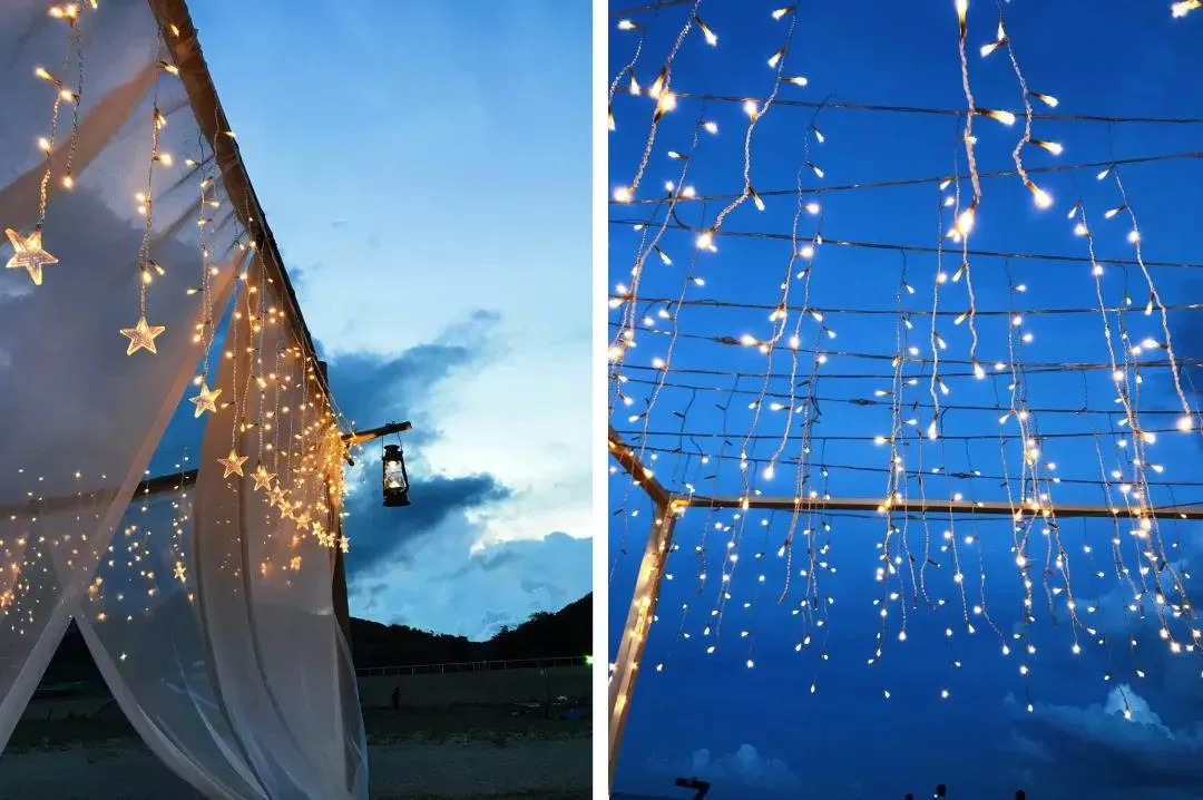 待到天色渐暗,就在海边开启一场深夜的“狂欢”。篝火派对,烧烤啤酒,露天电影,无限嗨起来,更有HCP免费教学沙滩排球、网球。神秘的惊喜服务作为彩蛋,让每个来半边山的人都拥有一次难忘的露营。