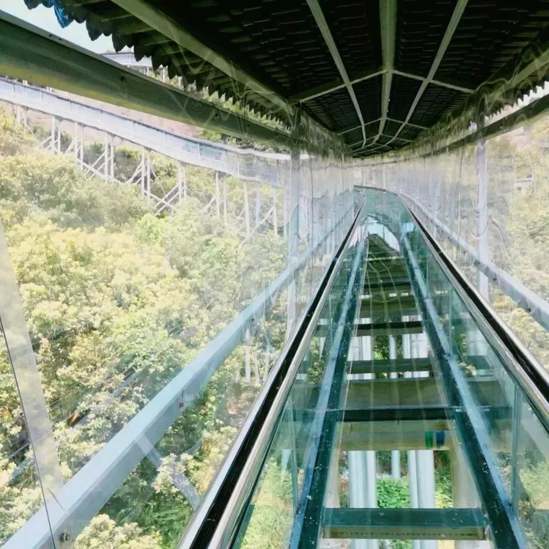 玻璃滑道也是相当的惊险刺激,滑道总长250米,最高落差达130米,为半包围结构,两侧可观风景。游客穿上特制的裤子和手套,可自行控制滑动速度,从入口滑至出口一般时间在三分钟左右。在呐喊中自由下滑,无疑是释放压力最好的办法。
