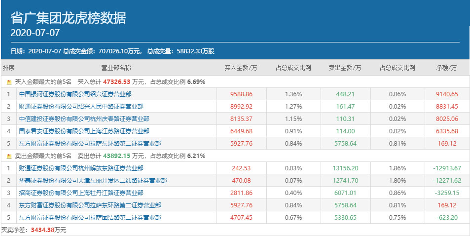 当日公布的龙虎榜数据显示,顶级游资赵老哥的常用席位中国银河证券绍兴高居省广集团龙虎榜买方首位,买入金额高达9588.86万元。同时,该股龙虎榜买方第二至四位也皆被知名游资常用席位占据,分别是:财通证券绍兴人民中路买入8992.92万元;中信建投证券杭州庆春路买入8135.37万元;章盟主的常用席位国泰君安证券上海江苏路买入6449.68万元。