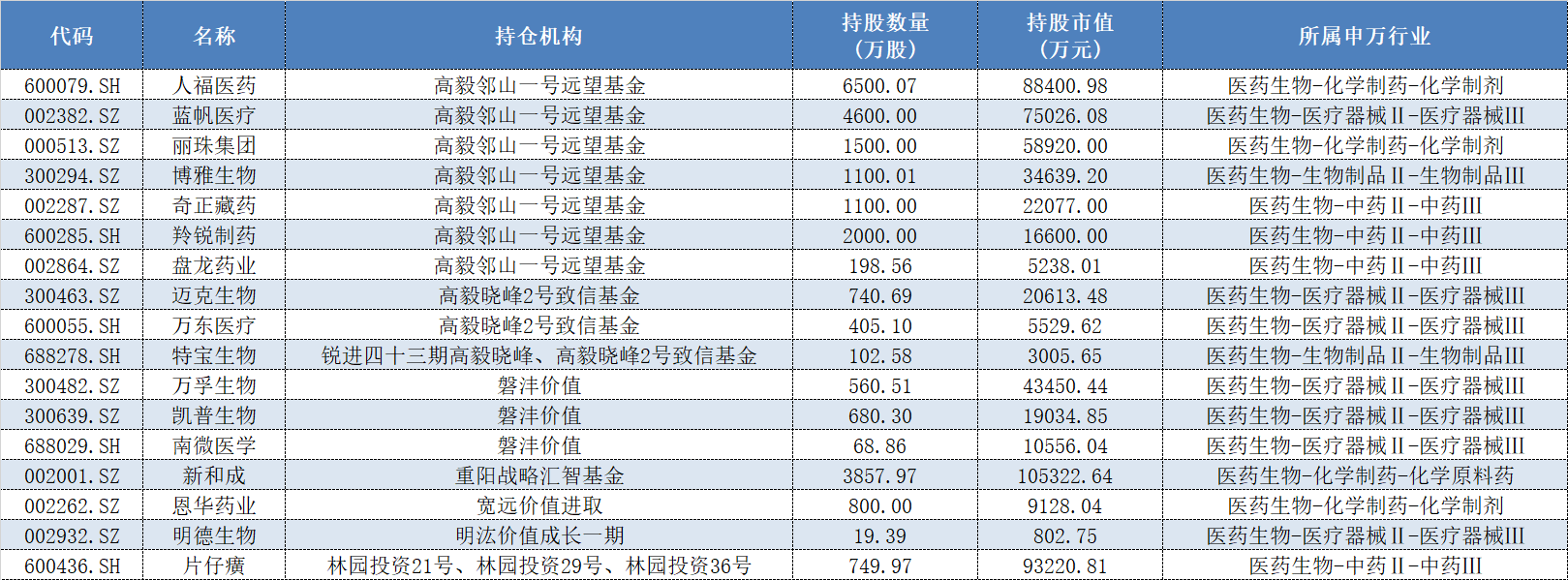 事实上,不只是高瓴资本,还有其他不少知名私募也都积极布局了医药生物领域。