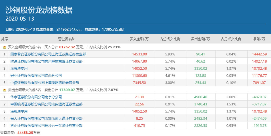 事实上,5月13日,除了主封的章盟主之外,分别占据沙钢股份龙虎榜买方第二、第四及第五位的也均是知名游资的常用席位。
