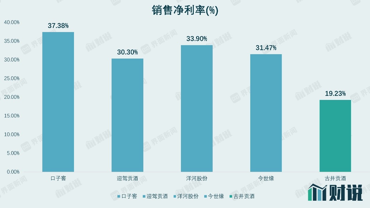 高企的销售费用给古井贡酒带来的是低效净利润率。无论是和省内主要竞争对手还是和全国其他名酒企业相比,古井贡酒19.23%的净利率落后同行超过十个百分点,盈利质量堪忧。这与公司喜好高举全国化大旗,却无法提升产品竞争力密不可分。这家公司也承认,“企业的管理精益化水平跟不上公司发展的步伐。”