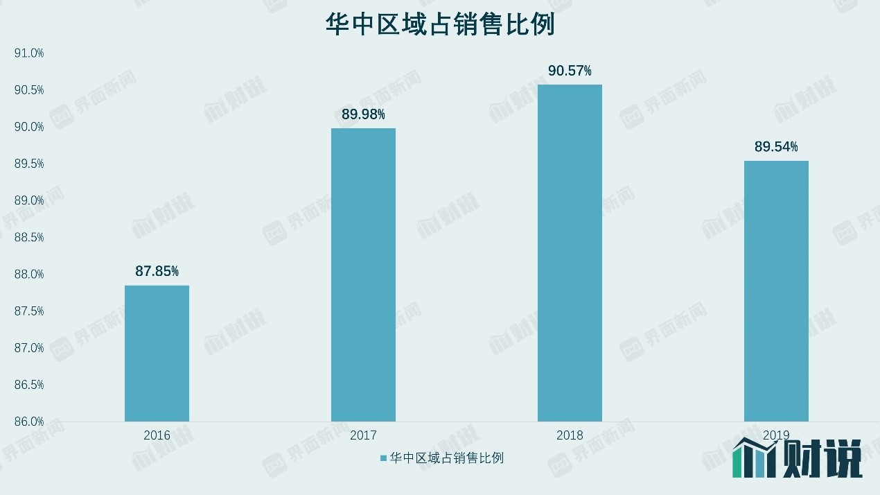 销售区域上,古井贡酒至今仍未冲出大本营。公司并未像大多数酒企一样将业务来源划分为省内和省外,而是划归于区域。古井贡酒的总部安徽位于华中地区。近四年来,该区域销售占比一直保持在近九成,其中2019年华中地区的销售额为93.27亿元,占比89.54%,地区性特征异常明显。公司于近几年在河南市场出现了销售渠道较高库存状况,之后通过果断控货并解决相关问题。但此事也加剧了业内对古井贡酒省外销售能力的担忧。