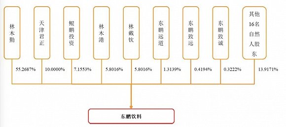 根据东鹏特饮招股书,东鹏特饮的前三大股东中,除创始人林木勤共计持有56.41%的股权之外,天津君正投资管理合伙企业(有限合伙)与深圳市鲲鹏投资发展合伙企业(有限合伙)分别以持股10%与7.1553%,位列第二大股东及第三大股东,而其兄弟林木港则持股5.8016%,为第四大股东。