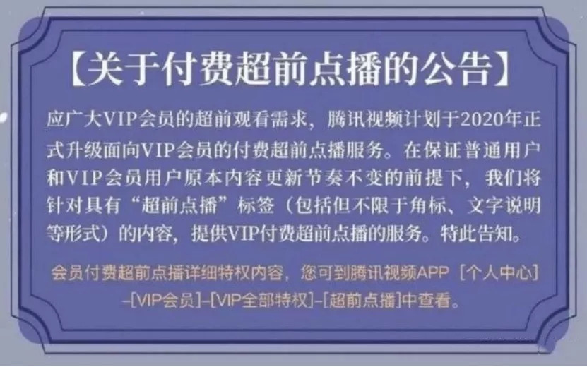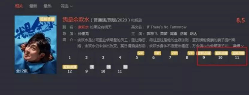 所以,现在的情况是,你身为VIP,追剧追得正在兴头上,视频网站突然给你来个“断片”,要看新的剧集需要继续花钱“超前点播”,你会不会对自己的VIP身份产生怀疑?