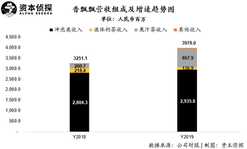 如今看来,香飘飘的即饮布局在近年显现效果——2019年度即饮业务收入约10.05亿元,同比增幅近140%,营收占比达到25.3%。其中,果汁茶表现亮眼,2019年实现营收8.68亿元,同比大涨332.43%,产品良好成长性已得到市场验证。