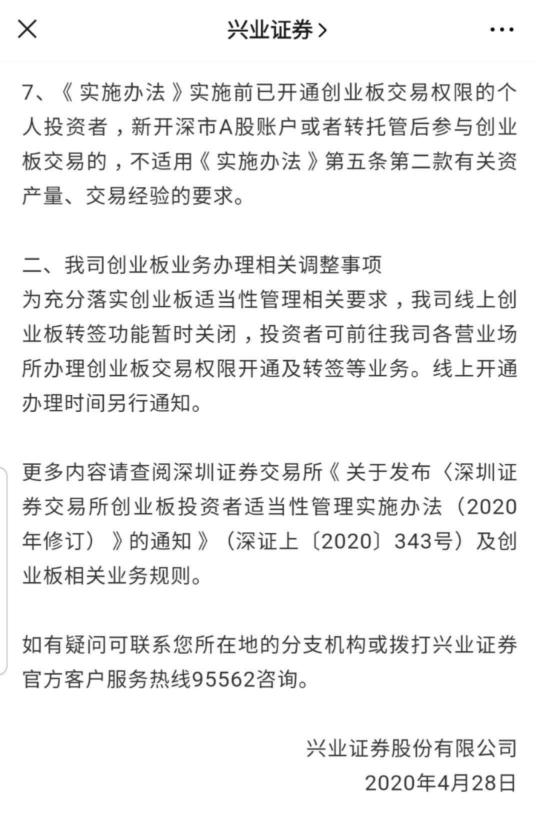 界面新闻获悉,除了国泰君安外,海通证券、兴业证券等多家券商也在今日相继发布了有关创业板投资者适当性管理相关调整事项的通知。