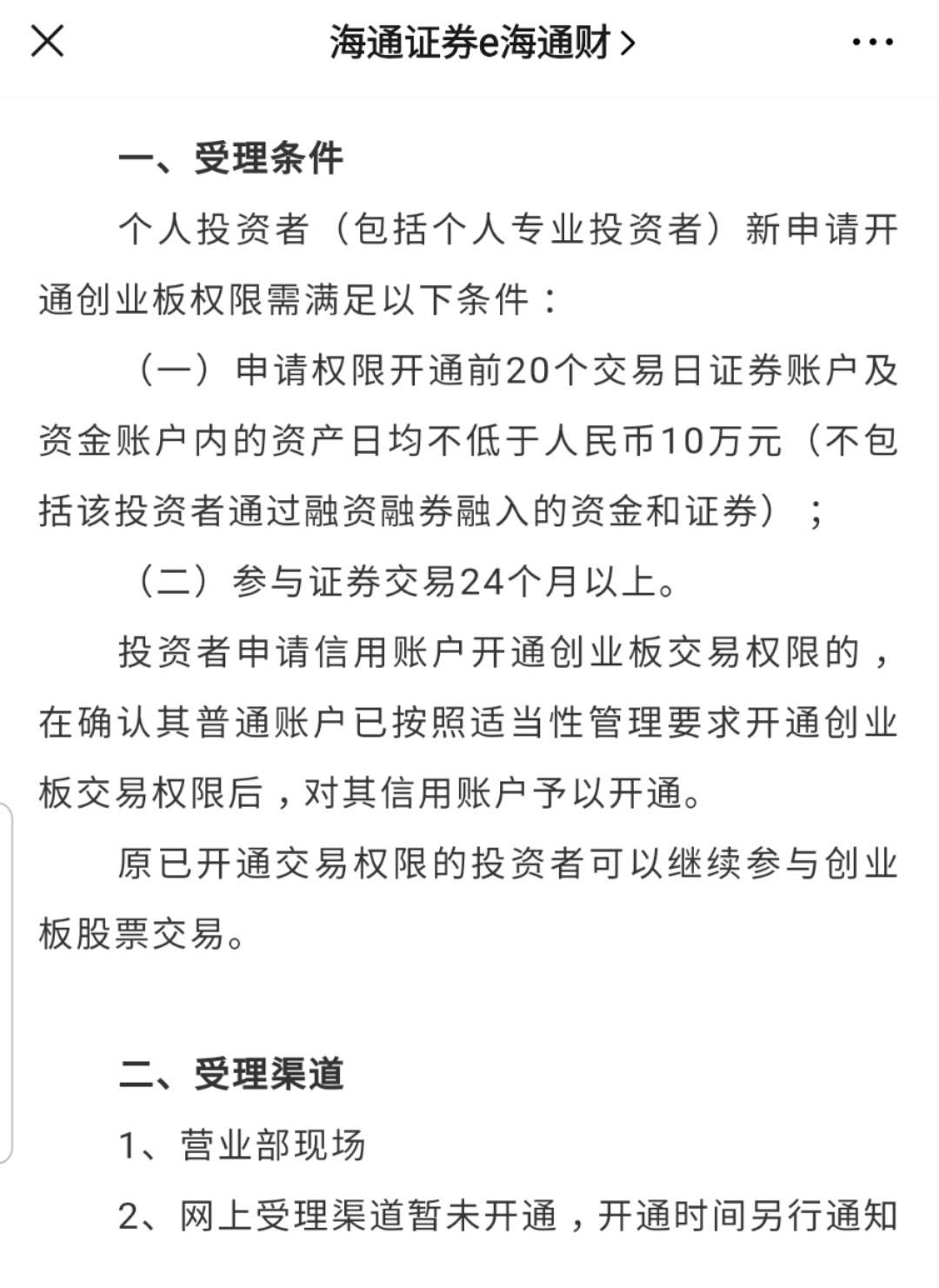 4月28日,界面新闻记者从国泰君安相关人士处获悉,在创业板注册制“官宣”17个小时后,今日13点20分,国泰君安君弘APP、富易PC客户端等线上自有平台已全面支持7*24小时创业板在线开通。