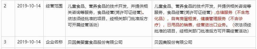 对于亏损,贝因美在2019年10月将公司全称由“贝因美婴童食品股份有限公司”变更为“贝因美股份有限公司。并增加经营范围“仓储服务(不含危化品),自有房屋租赁,健康管理服务(不含诊疗),日用品的销售,经营进出口业务”。