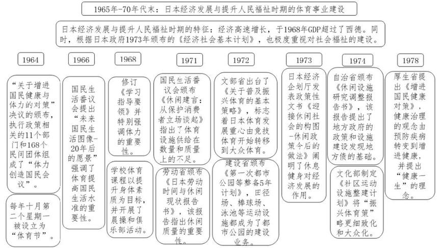 同年12月内阁会议制定《关于增进国民健康与体力的对策》,由此日本体育发展的重心开始逐渐偏向群众体育(图2)。