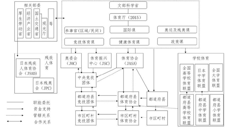 将其细分,日本体育治理机制可分为竞技体育、群众体育和学校体育: