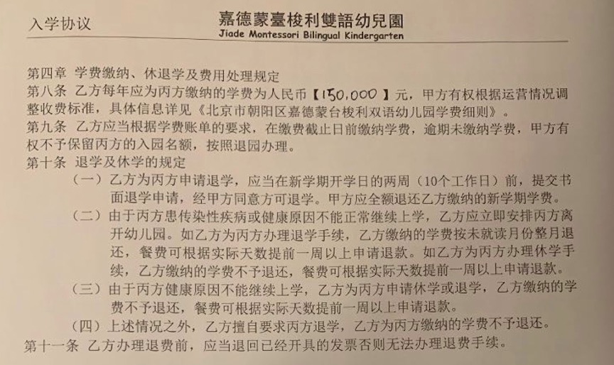 近日,多位家长向界面教育反映,北京市朝阳区嘉德蒙台梭利双语幼儿园(下称嘉德幼儿园)曾在1月预收高额保教费,但对家长们的退款诉求却未积极回应。