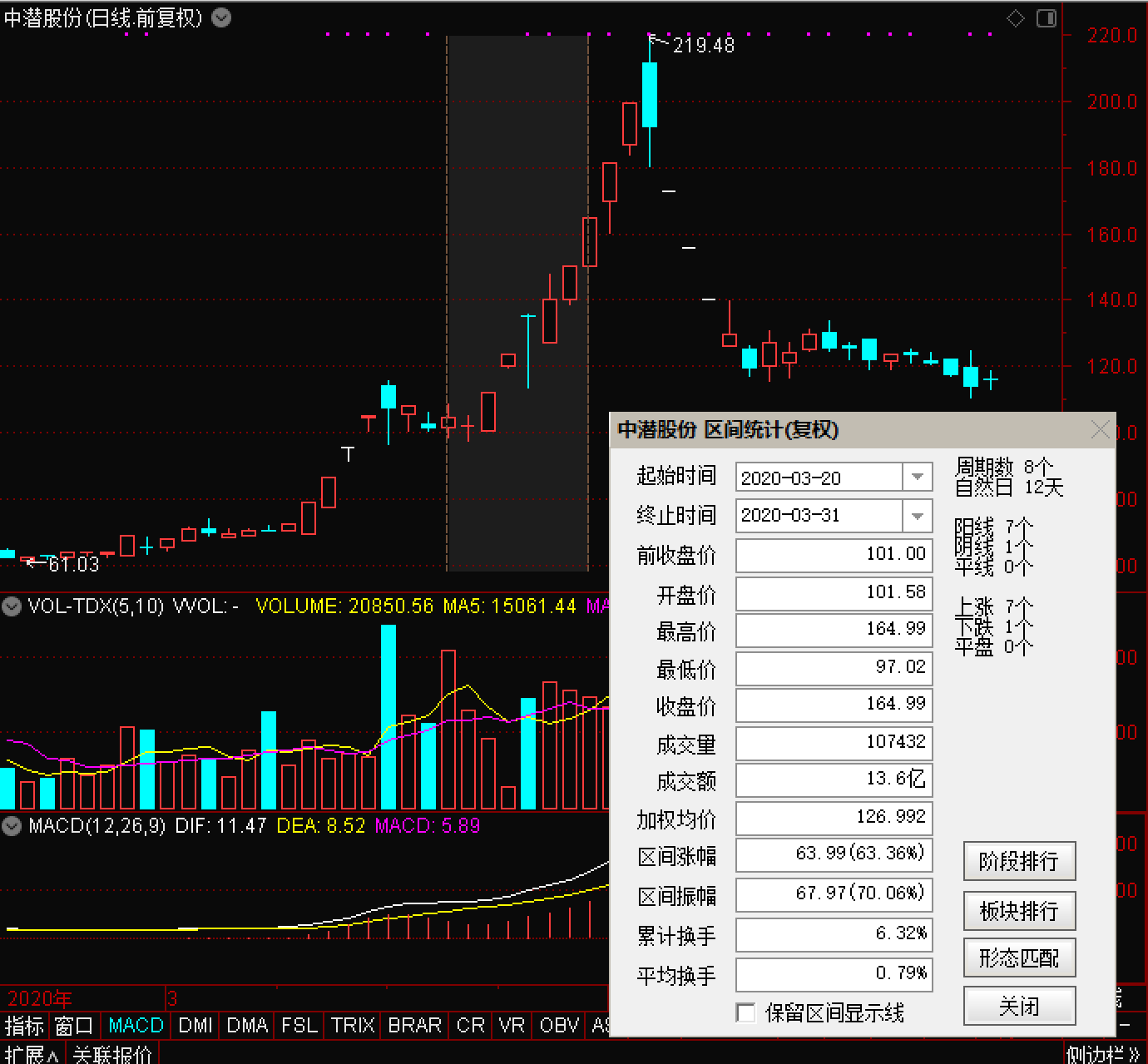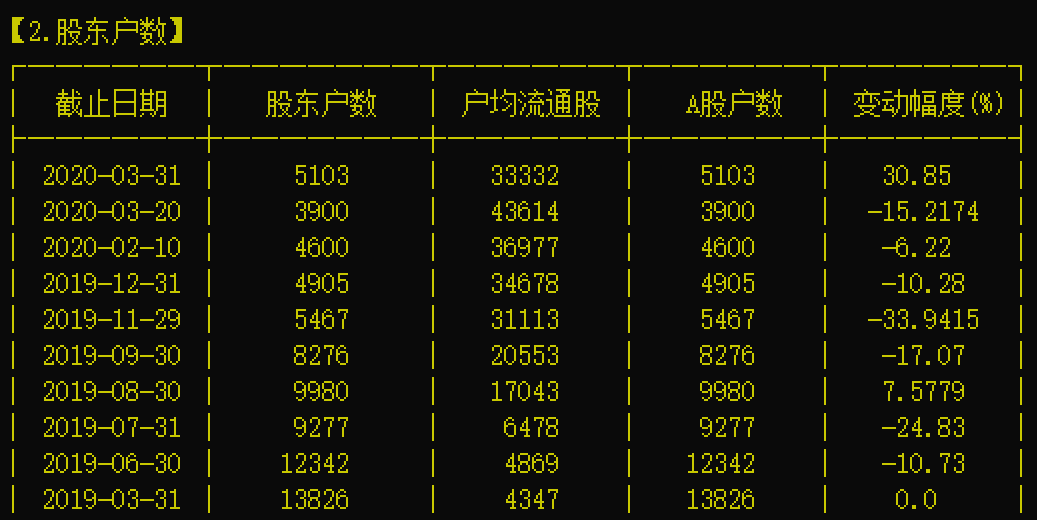 4月29日公司披露了一季报,其中显示,截至3月31日时中潜股份的股东户数为5103户。没有对比不成书,据通达信数据显示,在3月20日时该数据为3900户,在2月10日时该数据又系4600户,去年年底是为4905户。从盘面来看,3月20日至3月31日这段时间,正是中潜股份加速上涨的最后阶段,区区8个交易日里的累计涨幅为63.36%,而实际上也是在这段时间里,中潜股份筹码松动得厉害,这才使得3900户股东数,能在8天里直接增长了3成至5103户。