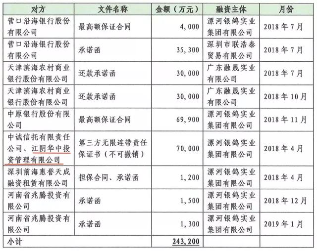 除了上诉未兑付的商票之外,银鸽投资此前还从“中植系”旗下的江阴华中投资管理有限公司处为第三方担保了数亿元融资,并签订了第三方无限连带责任保证书。