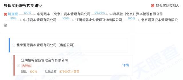不过通冠资本背后正是在资本市场赫赫有名的“中植系”,层层股权穿透后,通冠资本的实控人是“中植系”掌门解直锟。