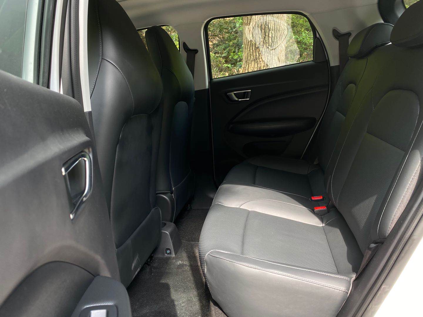 来到车厢内部,液晶仪表、中控大屏一应俱全,在辅以小巧的方向盘,整体布局十分紧凑且时尚。值得称道的是,零跑T03采用了五门四座的布局,这也使得其成为这个定位区间唯一的一款对后排乘客友好的A00级车型。