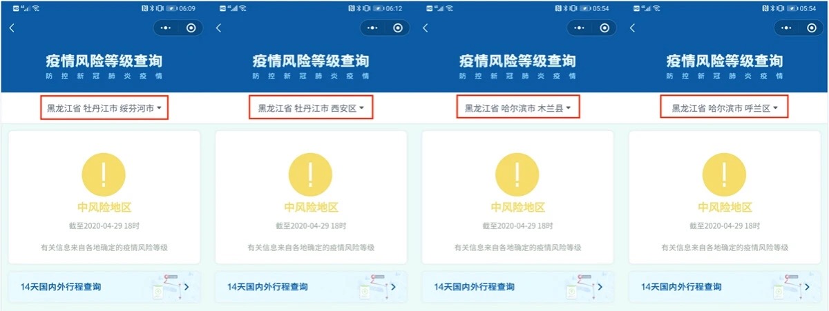目前,全国已无高风险地区,尚有一些中风险地区,集中在黑龙江省和辽宁省,包括: