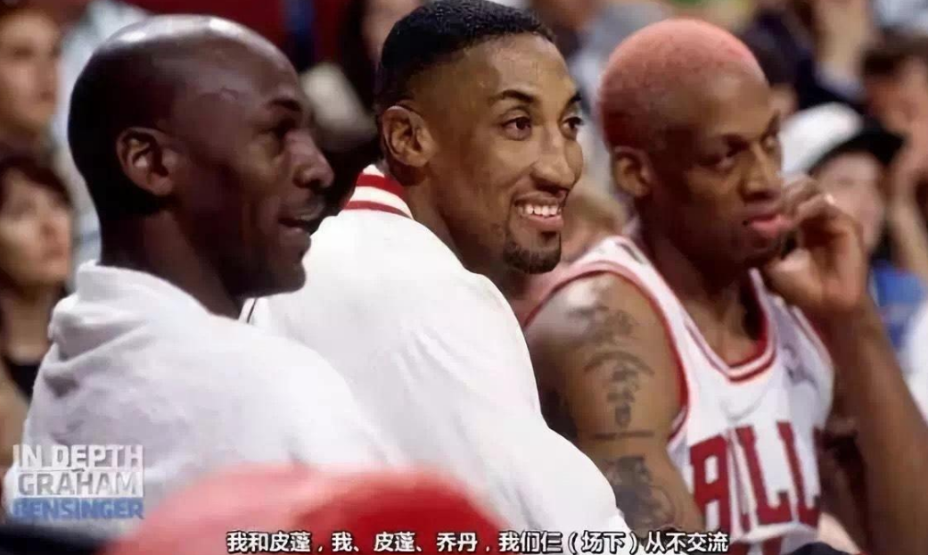 在湖人对战公牛的比赛中,乔丹被一个留着爆炸头的年轻人严防死守,皮蓬前来挡拆,却遭到大声呵斥: