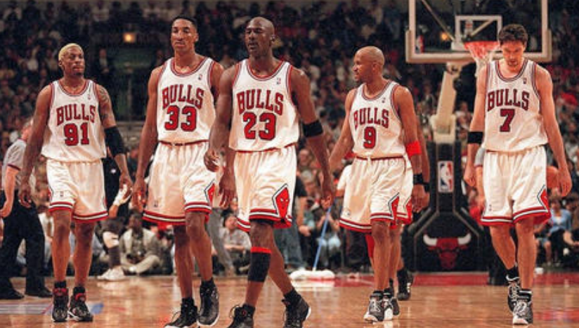 他们分别是绝对主角迈克尔·乔丹、二把手皮蓬、三把手罗德曼、主教练“禅师”菲尔·杰克逊,还有“大反派”总经理杰里·克劳斯。
