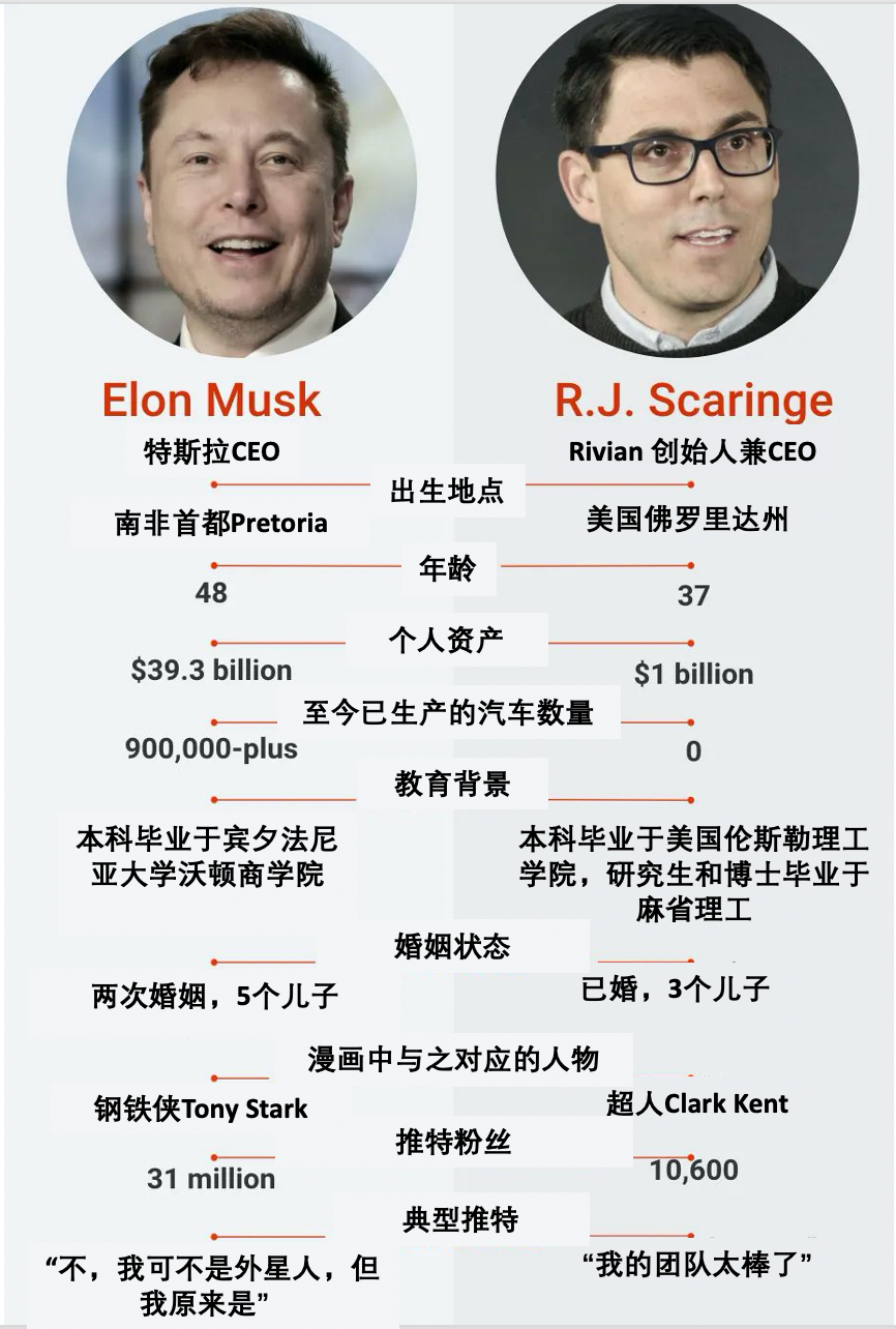 作为走得最远的两个造车新势力,人们很难不把马斯克与R.J.放在一处比较。