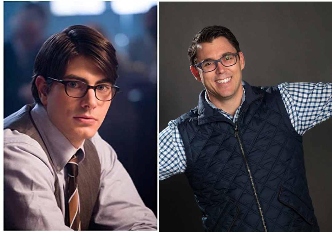 偏分的发型,黑框眼镜,两人简直神似。左:克拉克 肯特,右:R.J.斯卡林格