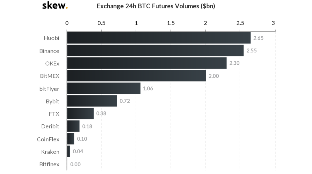 4月26日各交易所BTC合约交易量 数据来源:the Skew