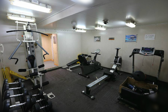 “雪龙”号里的小型健身房。