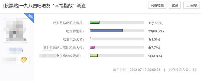 吧友“幸福指数”调查,让吧友投票评价吧主的工作,作为凭证方便贴吧官方运营进行介入。这远比今日“得不到就毁掉它”的饭圈“撕番位”文化要有建设性得多。
