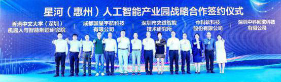 当天,中国工程院院士、香港中文大学(深圳)校长徐扬生,中国工程院院士、鹏城实验室主任高文,惠州市委书记、市人大常委会主任李贻伟,惠州市副市长余金富,惠州仲恺高新区委书记吴献民,惠州仲恺高新区委副书记、管委会主任张莉兰等领导出席了仪式。并特邀香港中文大学(深圳)机器人与智能制造研究院院长张爱东、成都国星宇航科技有限公司、电子科技大学卫星产业技术研究院院长陆川、深圳市先进智能技术研究所副所长王成疆、中科软深圳公司总经理冯洋、深圳中科闻歌总经理盘浩军等星河战略合作企业代表共同见证。星河控股集团董事长黄楚龙、副董事长兼总裁姚惠琼等作为主办方代表参与了活动。