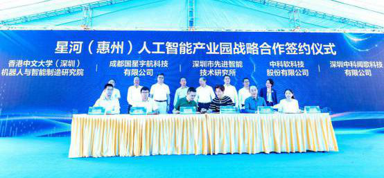 盛事铸伟业,协作促发展。当天,香港中文大学(深圳)机器人与智能制造研究院、深圳市先进智能技术研究所、国星宇航、中科闻歌、中科软作为战略合作企业代表,与星河控股集团签订了战略合作协议。随后,惠州市委、市政府、仲恺高新区委、区管委会,以及星河战略合作伙伴、星河控股集团代表共同培土奠基,宣告星河(惠州)人工智能产业园正式起航。