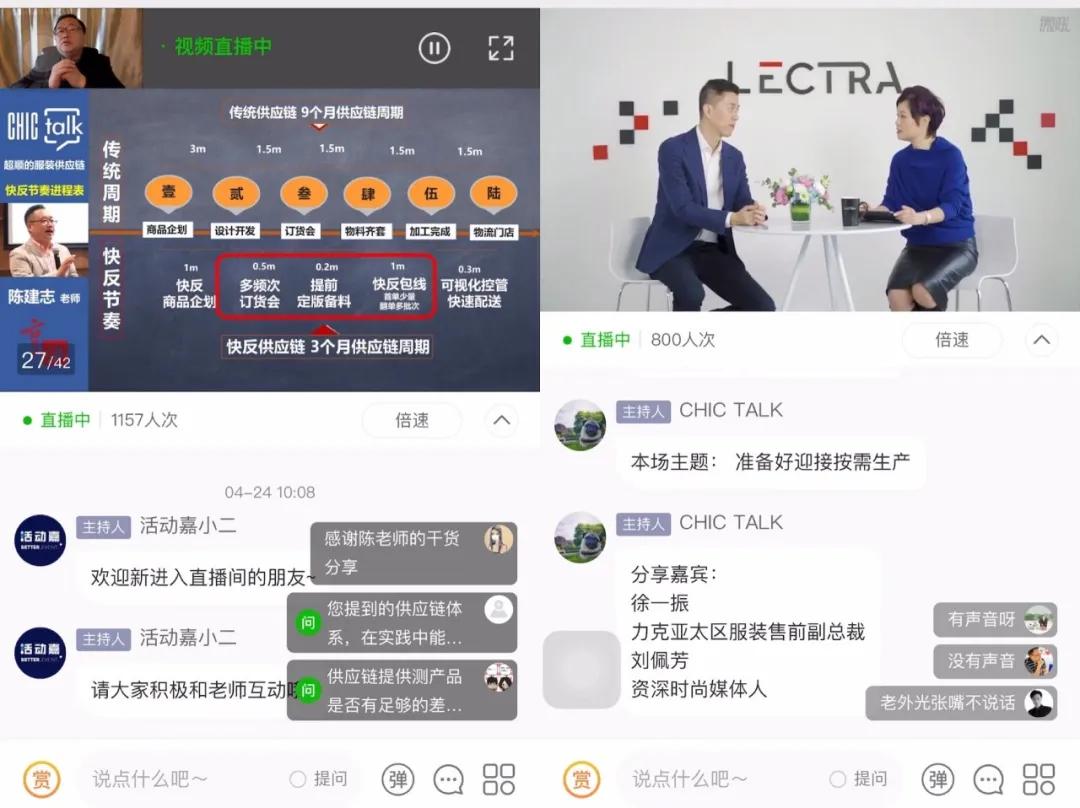 我们进入了多场论坛观看,其中大部分论坛的在线观看人数显示过千,疫情加速暴露了服装生产供应链的短板,从业者都在急于寻找解决方案。