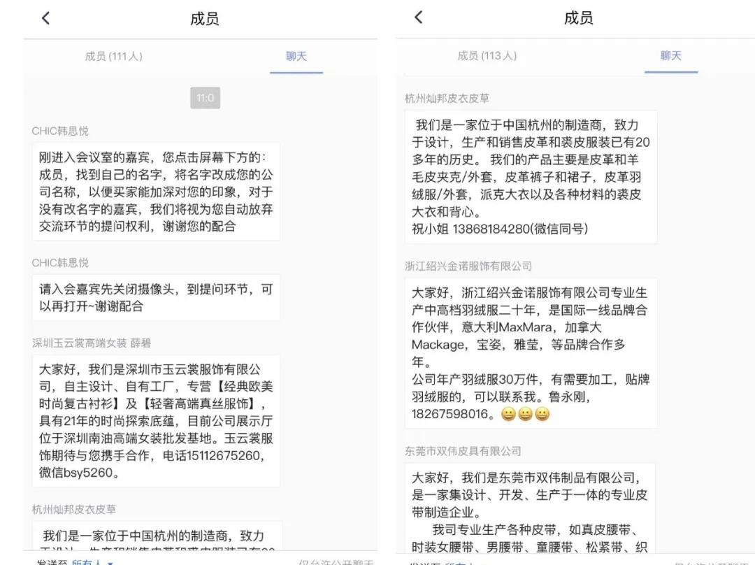 这也不难理解,在订单流水难以有效维持的特殊时期,谁都希望能有一个看上去长期、稳定且能够上量的采购方。不过对于供应商来说,曾经方便展示其产品的线下展位的消失,使得他们的自荐变得吃力,很多展商的页面点开,只有地址、联系方式及几张商品的平面照片,信息量过低,即使有一些直播的展示,面料、裁剪等服装品类的核心卖点也难以体现,大大增加了谈判的难度。