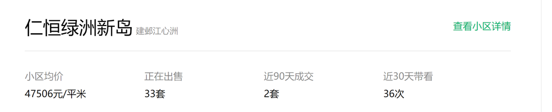 此前的恒绿洲新岛一期、二期以及江岛华庭等项目。目前在链家网上,仁恒绿洲新岛二手房均价约47506元/㎡,江岛华庭二手房均价高达59057元/㎡