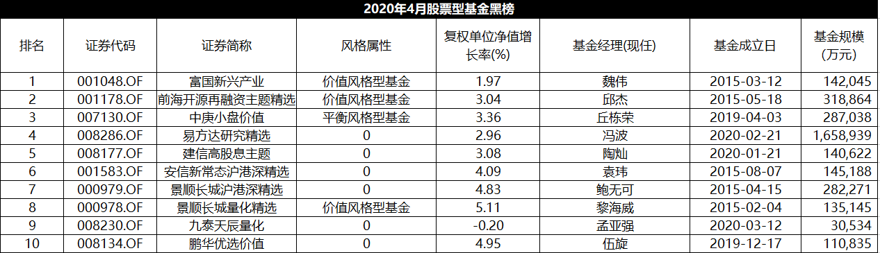 面对四月份的市场反弹,一些次新基金显然没有做好准备。从上表可以看到,多只成立不足两个月的基金上榜,包括冯波的易方达研究精选、孟亚强的九泰天辰量化等。