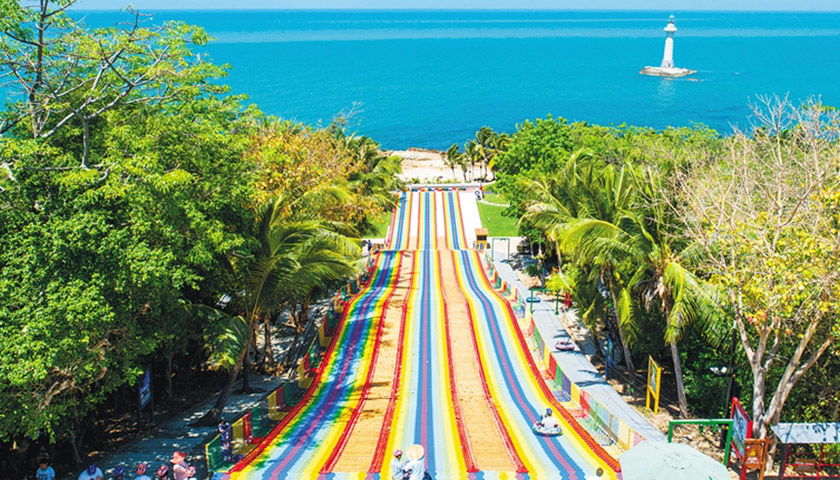 “五一”小长假首日,三亚各大景区、酒店积极推出一系列舒心游、安心游等新产品、新套餐,积极迎接我国进入常态化疫情防控阶段后的首个旅游小长假,推动旅游业平稳有序复苏。其中,作为三亚传统观光旅游景区,大小洞天景区结合山、海等自然、人文旅游资源,推出“彩虹滑道”全新体验项目,打造市民游客度假休闲的新打卡点。