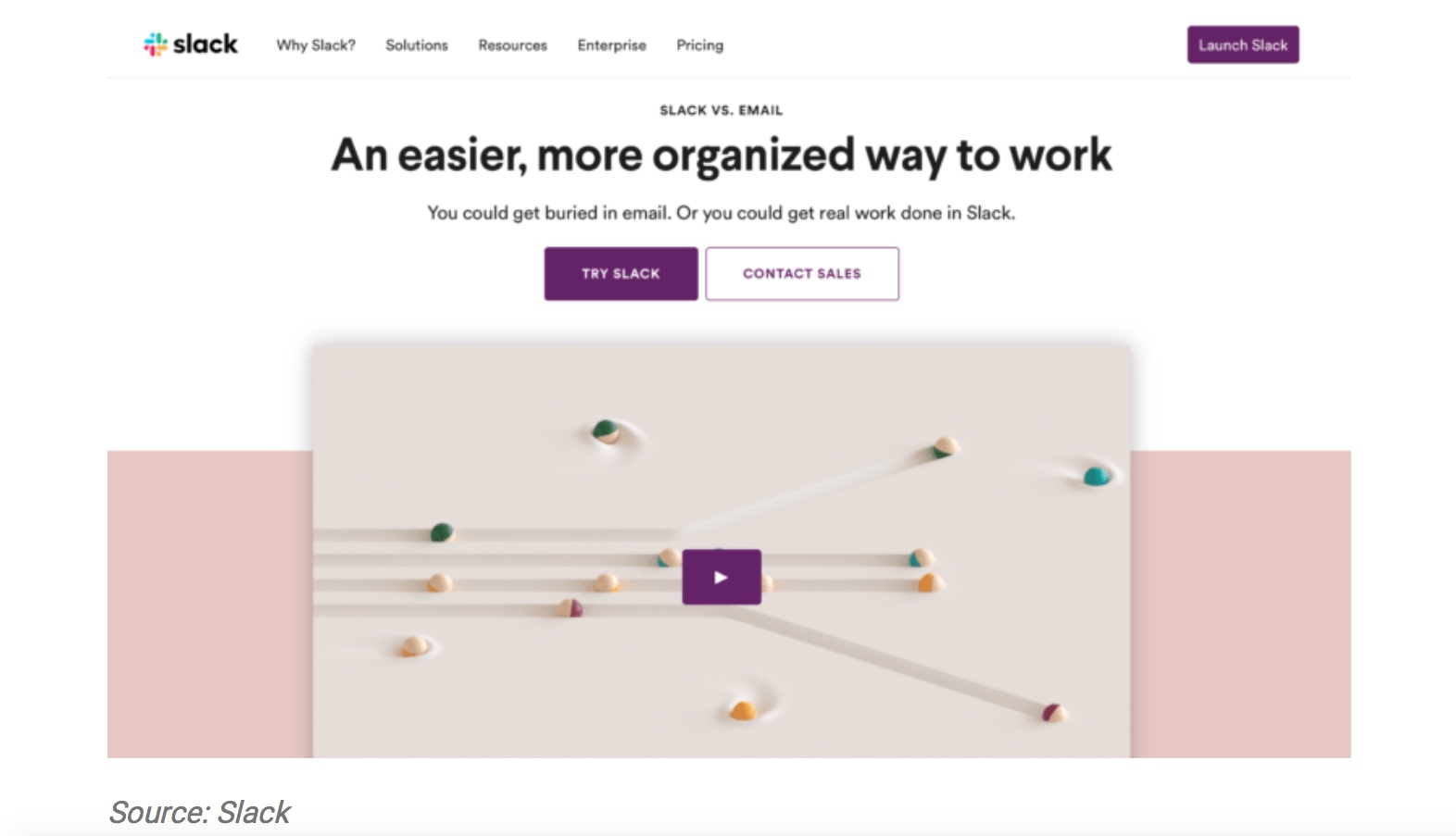 看到了竞争对手没有看到的机会,提供了一个让Slack成为定义产品类别的机会。它通过营销一个引人注目的角度来利用这个机会。