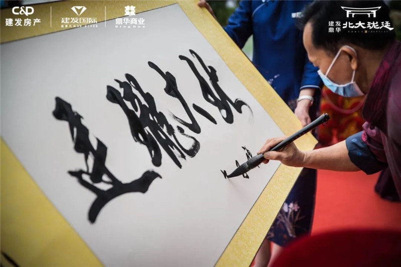 在热闹氛围中,书法大师江家积老师现场执笔挥毫,为建发&鼎华·北大珑廷赠予“北大珑廷”四字墨宝,风雅跃然纸上。象征着美好寓意的寿山石印章,为书法作品留下美好印记,同时,也是为建发&鼎华·北大珑廷的未来送上美好祝愿!