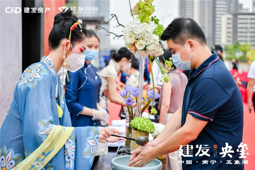 建发·央玺,以五象湖水为来宾浸手施以最高规制的中式之礼“沐手礼”