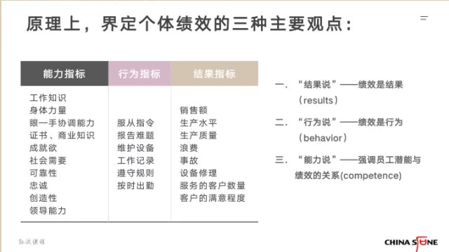 我的课程有三讲,不可能把所有的细节讲清楚,所以课程的副标题叫“绩效管理的理论和实践”,意在 从一个更高的层面上去思考。三讲的内容分别是:第一讲,什么是绩效?第二,绩效如何产生和提升?第三,当前绩效遇到的一些问题,以及我们为什么会提出所谓的“自我驱动”和绩效管理的问题。