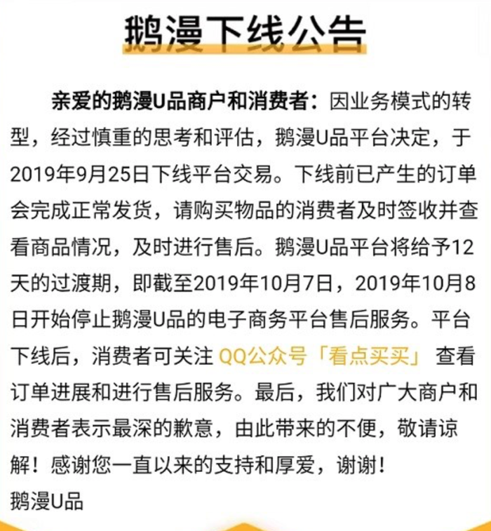 紧接着,2018年5月28日,腾讯通过QQ推出自有电商平台“鹅漫U品”,这是一个以QQ年轻用户为核心,打造腾讯在泛二次元文化领域的核心衍生品生态平台,拥有独立的App和小程序。但是由于“鹅漫U品”并没有带来很好的反响,最终与去年9月25日低调下线,并入了QQ公众号“看点买买”,成为了一个购物功能,结局也不理想。