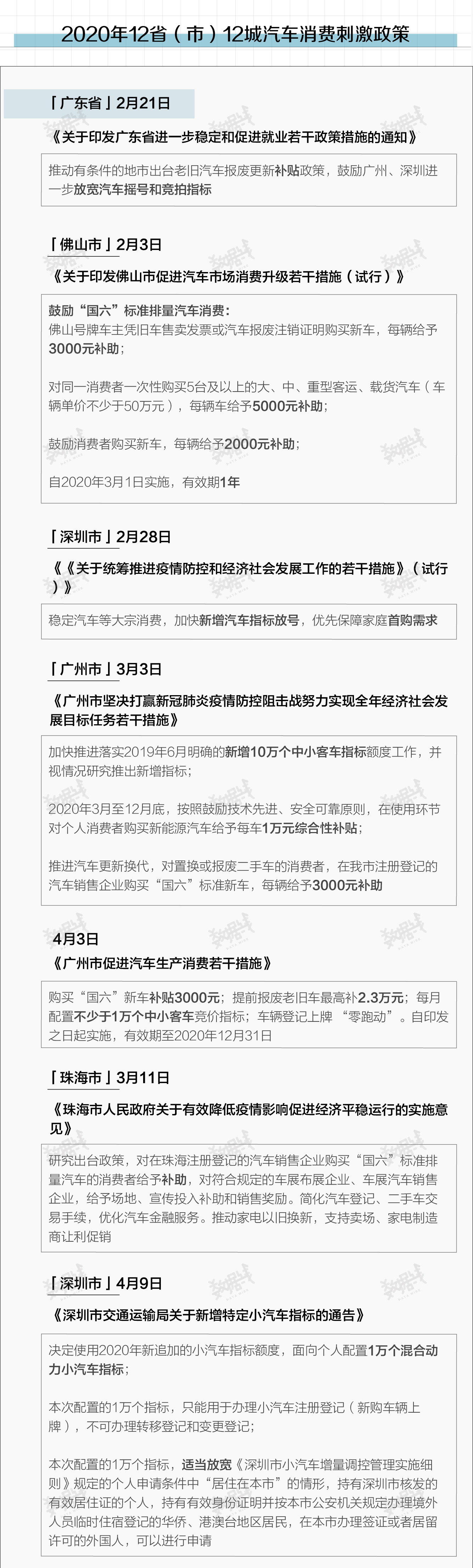 为应对疫情给车市带来的冲击,据界面数据不完全统计,截至2020年5月2日,至少有12个省(市)及12城已发布针对汽车消费的刺激政策。