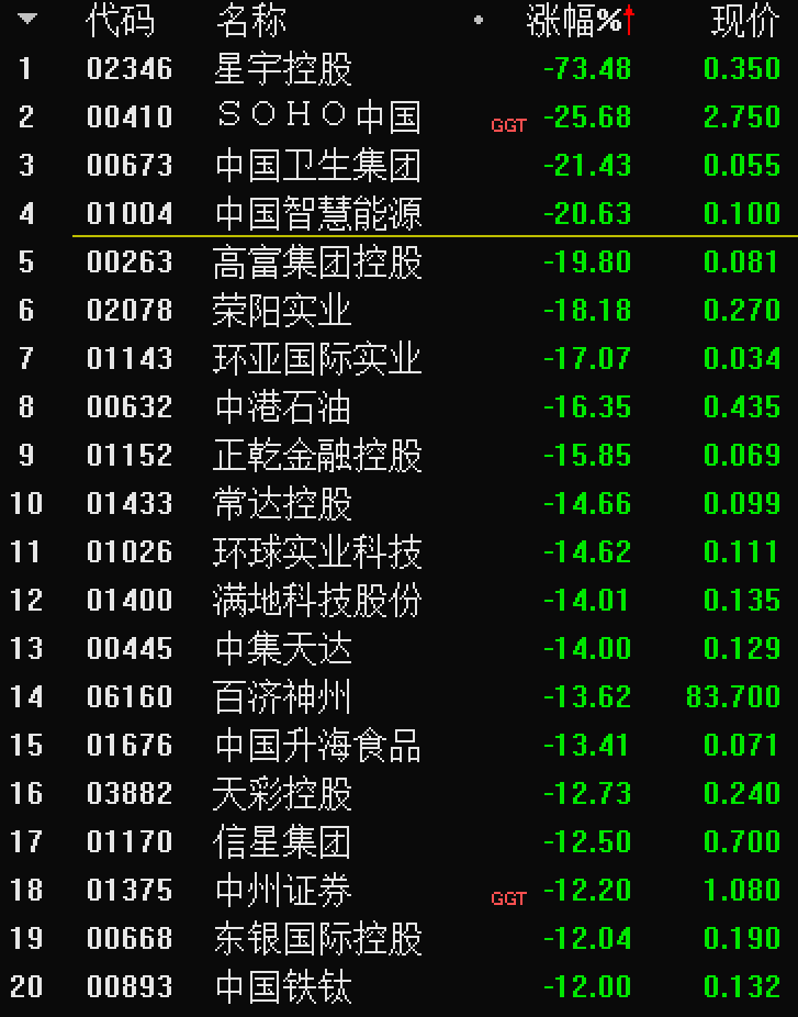 另外需要指出的是,5月4日港股并不好过,其中恒生指数下跌4.18%,报收于23613.8点。主板中,除了星宇控股垫底之外,SOHO中国(00410.HK)、中国卫生集团(00673.HK)、中国智慧能源(01004.HK)等跌幅都在20%以上。创业板中,跌幅超过20%的还有中国农业生态(08166.HK)、利骏集团香港(08360.HK)、中国之信集团(08265.HK)。