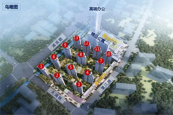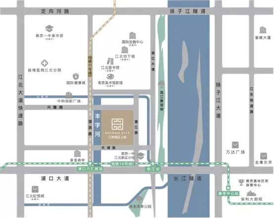 项目周边地铁10号线、11号线、15号线三线汇聚,其中,距离10号线/11号线交汇站点浦口万汇城站约700米。