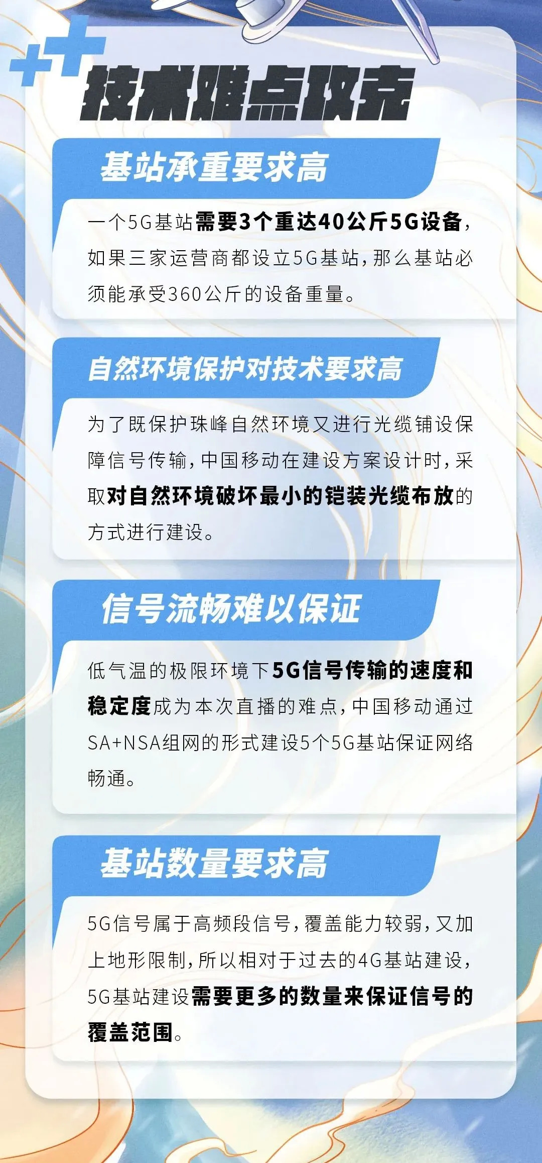 在道路艰险、高寒缺氧的珠峰开通5G信号,