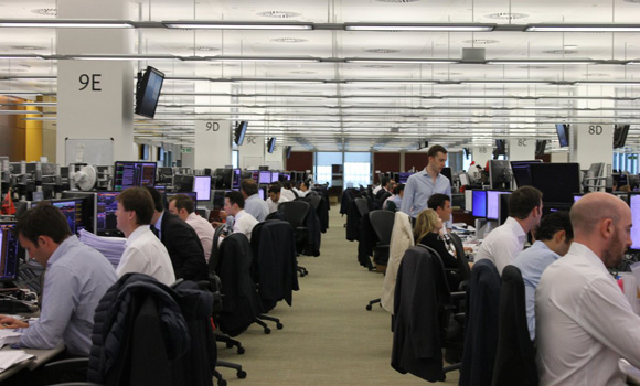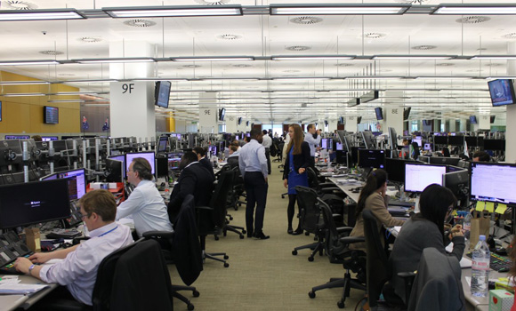 Sophie在这开阔的股票部门办公区的一角上班,楼上的固定收益业务部门格局相似,而这与摩根大通在整个伦敦的办公范围相比只算一小块。