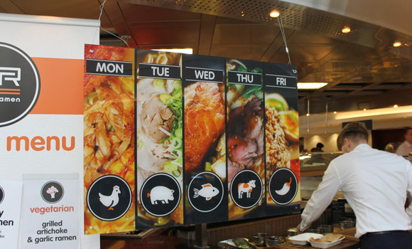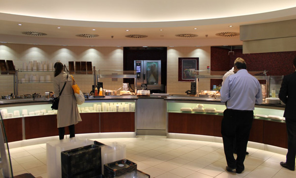 这里一片繁忙景象,而大厦里有很多像这样能补充能量的地方。显然墨西哥玉米薄饼卷是周二这天最受欢迎的。