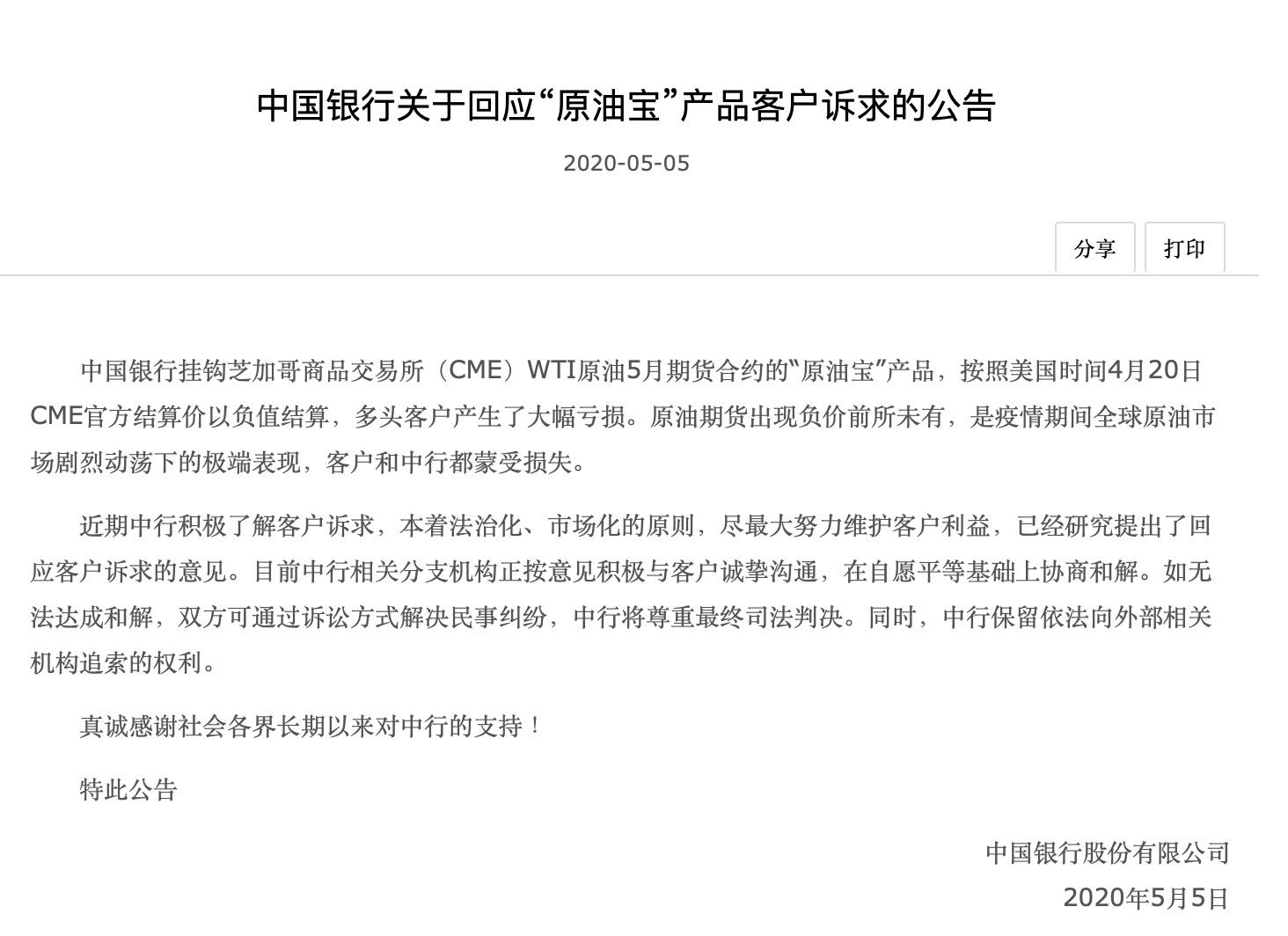 5月5日晚,中国银行发布公告再度回应。