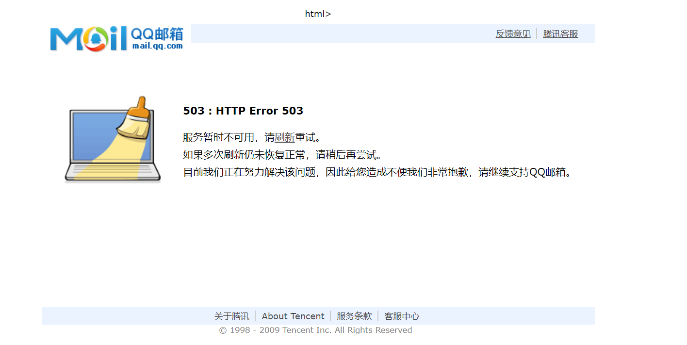 QQ邮箱疑似服务器崩溃,显示服务暂时不可用